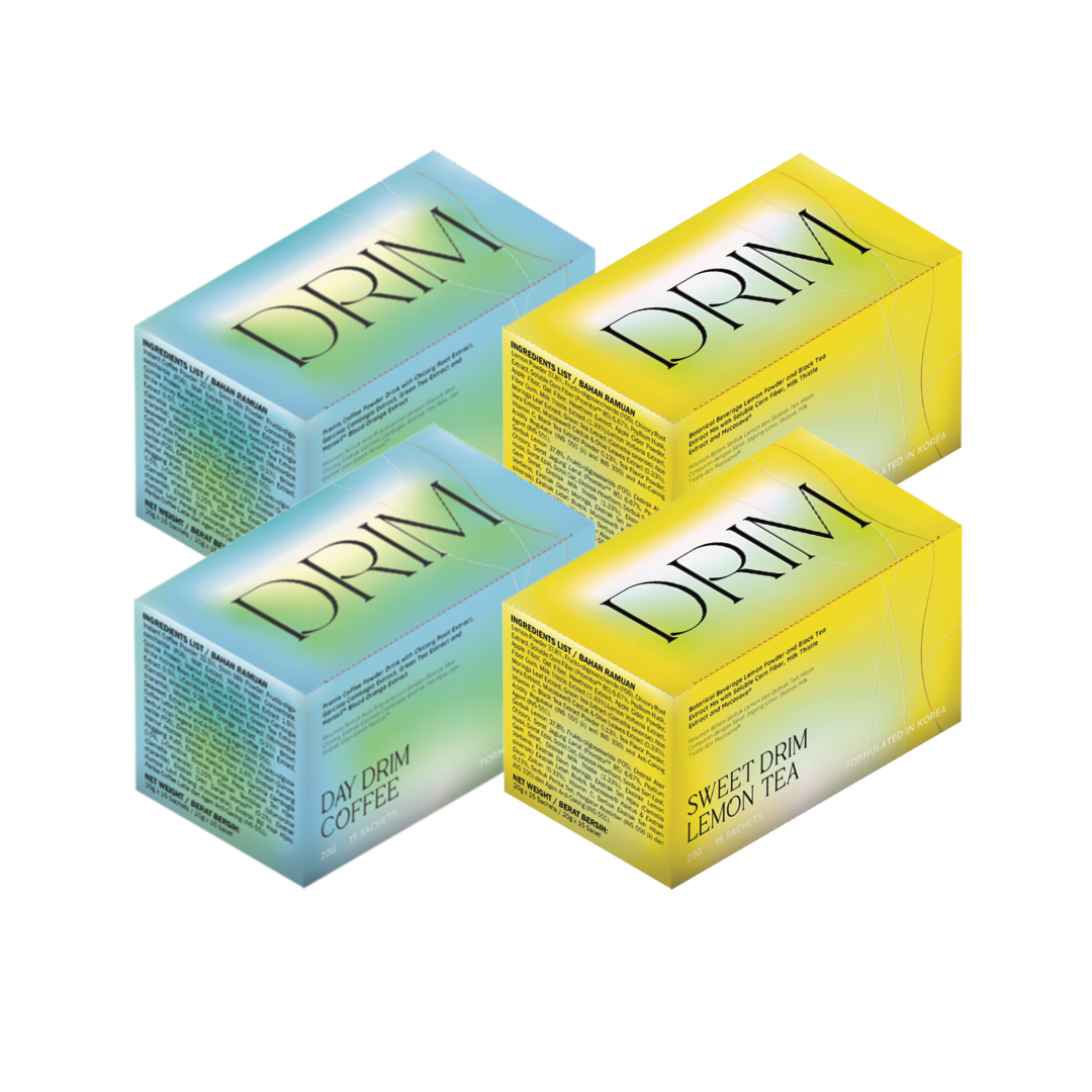 Inclusive of 2 boxes of Day Drim : Coffee/Cocoa, AND 2 boxes of Sweet Drim : Lemon Tea/ Lychee Jelly/ Grape Jelly
